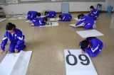 顧問の陣頭指揮で、美術部員による2度目の下塗り。