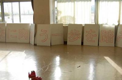 位置を決め、慎重になぞりながら、白地の板に文字を