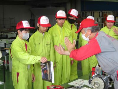【教育施設・Yさん】…1日目午前中、「働く意義」を学び、その後は学校の中を見学。午後は楽しみにしていたエンジンの解体。2日目は解体から組立までをした。組み立てたエンジンが起動した時は嬉しかった。電気自動車に乗った。ガソリン車との違いを学んだ。3日目はお客さんの車を点検。緊張したけど先生や学生さんのおかげでなんとか終わった。午後はベンツに乗って外周2周した。人生に1回しかないような事でした。この3日間で仕事の大切さを学びました。僕も大人になったらこの事を思い出して仕事をしたいです。とても楽しい3日間でした。