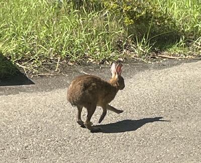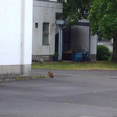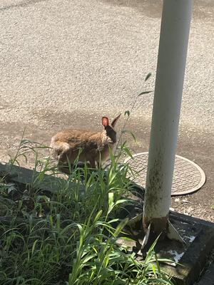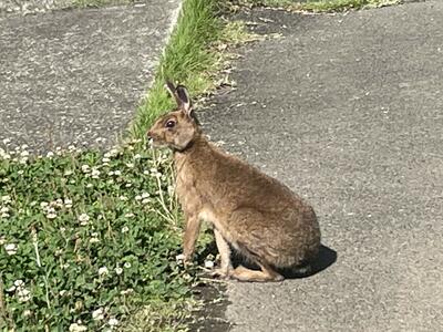 野ウサギが本日、朝、校舎の裏にちょこんっと。