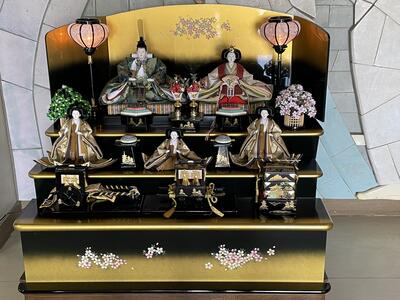 本校でもひな祭りができないかなと、自宅から持ってきてみました。強風の中、運び入れて、職員みんなで飾り付けました。小さい頃の思い出を話しながらワイワイ・ガヤガヤ。ALTのエボニーにとっては初めてのひな祭りです。