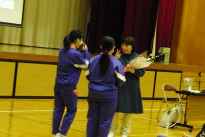 宮関 俊光先生。川里中では3年間お世話になりました。ここにいる皆さんは全員、国語を教わって、半分くらいの皆さんが担任の先生としてお世話になりました。男子バスケット部、美術部や剣道部でもお世話になりました。