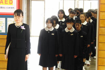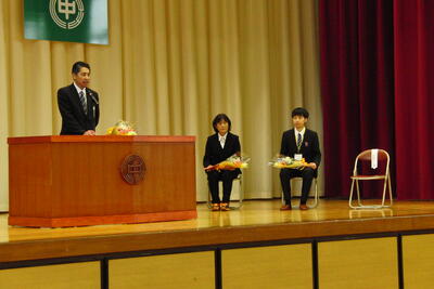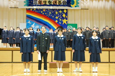 ・・・結びに、ご来賓のみなさま、保護者のみなさまのご多幸をお祈りするとともに、在校生とともにこの川里中の伝統を引き継いでまいります。