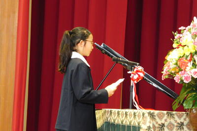 【式辞より一部抜粋】した様々な思いが刻み込まれており、かけがえのない三年間の重みを感じていることと思います。