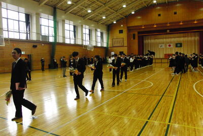 川里中学校 第64期 90名の巣立ちは、お天気にも恵まれ、春の気配が感じられるなかでした。