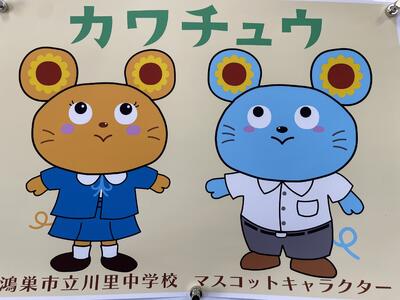 本校60周年を記念して作ったマスコットキャラクター「カワチュウ」が最近、進化中。いろいろなバージョンが登場しています。