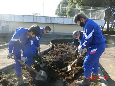 楽しそうな笑顔がたくさん見られました。この花が咲き誇る3月には、卒業生として巣立っていく3年生。受験期真っ只中、ほっこり穏やかな時間が流れ、地元かわさとの魅力をアピールできる庭を職員の方々と作ることが出来ました。