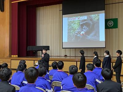 2年生は、今年度、校外学習で上野・浅草周辺で班別行動を行います。その事前学習の集大成として、班別発表会を各学級で行いました。どの班もパワーポイント等を駆使したり、クイズ形式で興味を惹いたり、凝った動画を作成したりと、自分たちが学習するだけでなく、観ているものを飽きさせない工夫を凝らしていました。そのなかで、一番分かりやすく、伝えられた情報が多かった各クラスの選りすぐりの1班が保護者会で学習成果を発表しました。