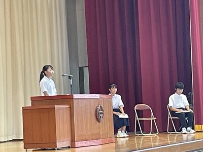 今日は、新たな生徒会役員を決める大切な立会演説会でした。久しぶりの対面の立会演説会でしたが、しっかり演説を聴き、立候補者の思いを感じ取ることができたと思います。今回も7名の生徒の皆さんが生徒会本部役員選挙に立候補してくれました。