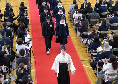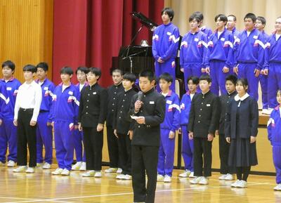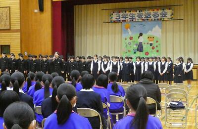さあ、これからは自分の選んだ道で新たな生活が始まります。この中には地元や親元を離れ、夢に向かう人もいるでしょう。義務教育を終え、それぞれが選んだ道を進むためには、優しさに加えて、強さも身に付けなくてはなりません。自分の意志をもち、失敗を恐れず挑戦する強さです。優しいだけでは、弱く、強いだけでは脆いのです。2つを兼ね備えて、自分らしくしなやかに人生を歩んでほしいと願っています。