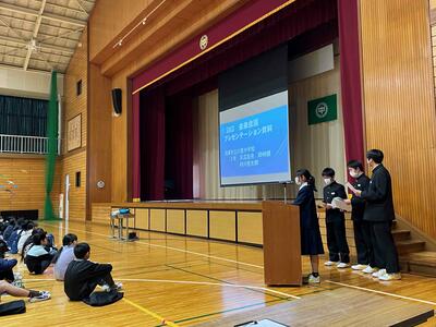 今年度から保護者説明会と並行して、新入生の学校・部活動見学会も行いました。生徒会本部役員による学校紹介や本校のSDGsの取組発表も行いました。