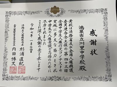 川里中学校入学まであと2か月を切りました。先輩たちと一緒に川里中で大きく成長していきましょう。入学をお待ちしています。